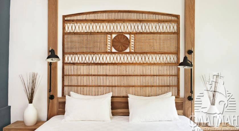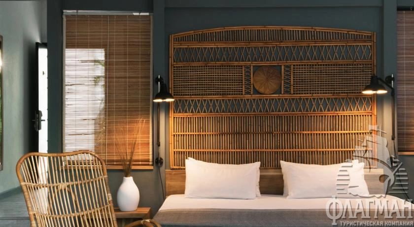 - 130 Couple Suite (64 м², макс. 2 чел.). Номера выполнены в стиле «тропического жилища», интерьер которых достаточно минималистичен, выдержан в спокойных натуральных тонах с ратанговыми элементами декора. Спальня с кроватью king size или двумя кроватями twin, ванная комната с ванной и душем, балкон или терраса. Вид на сад.