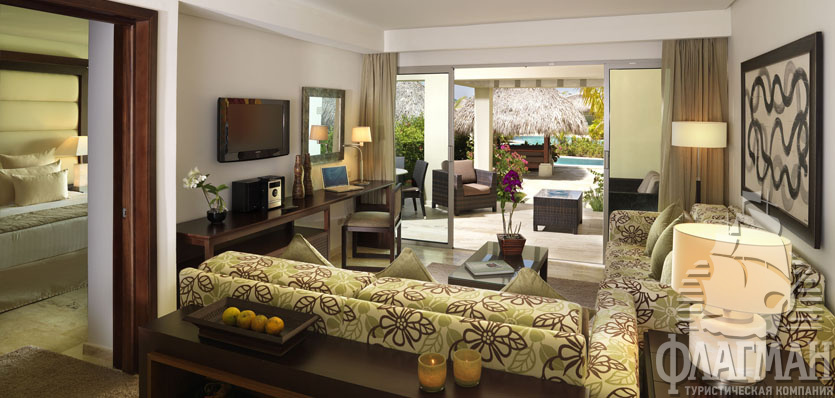 - The Reserve One Bedroom Master Suite (номера расположены на втором и третьем этажах бунгало The Reserve, спальня и гостиная с диван-кроватью и зоной столовой, джакузи на двоих в ванной комнате и на террасе, макс. 2+2+1 инфант или 3+1 инфант, 100 м2; возможность объединения с номером категории One Bedroom Suite). Как первая, так и вторая категория номеров может быть с выходом к бассейну (swim up, только для взрослых!).