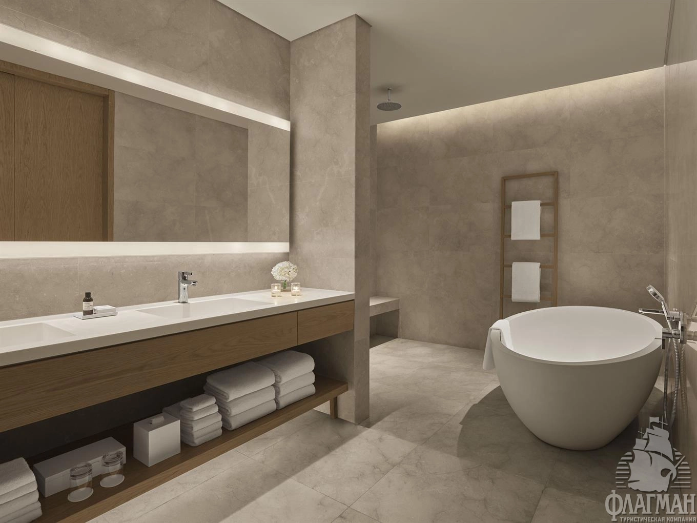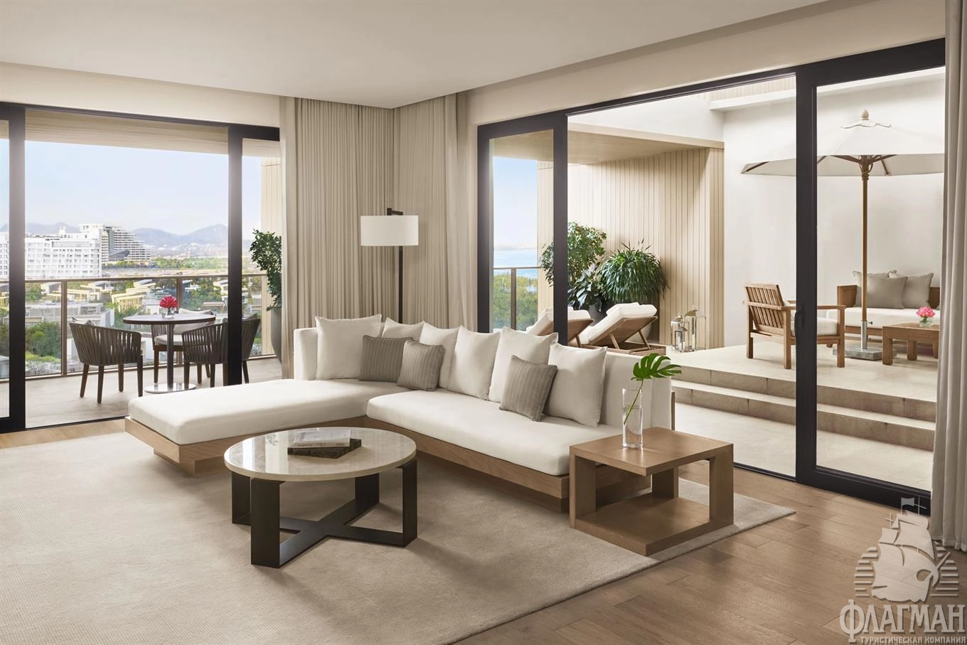 - Terrace suite (на 8-9 этажах, 142 кв. м, спальня, кровать King-size, гостиная, межкомнатная дверь, ванная комната, балкон, вид на бассейн и море);