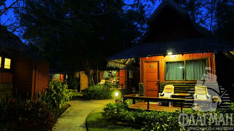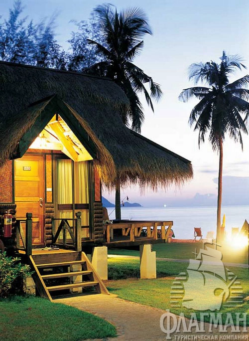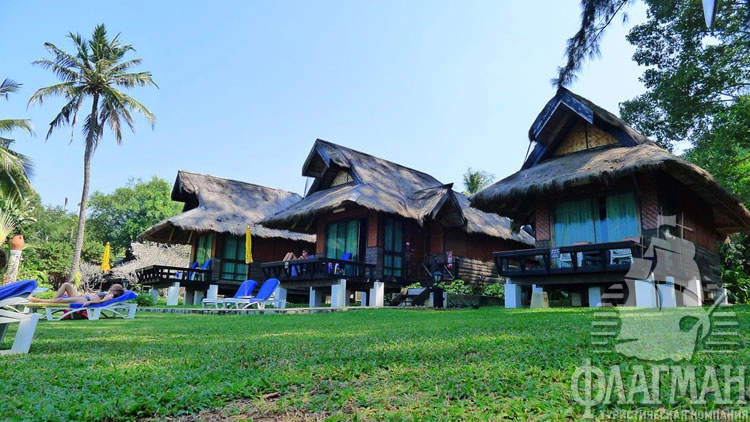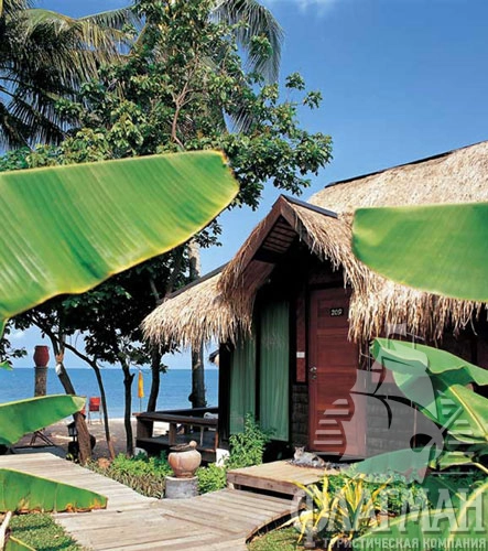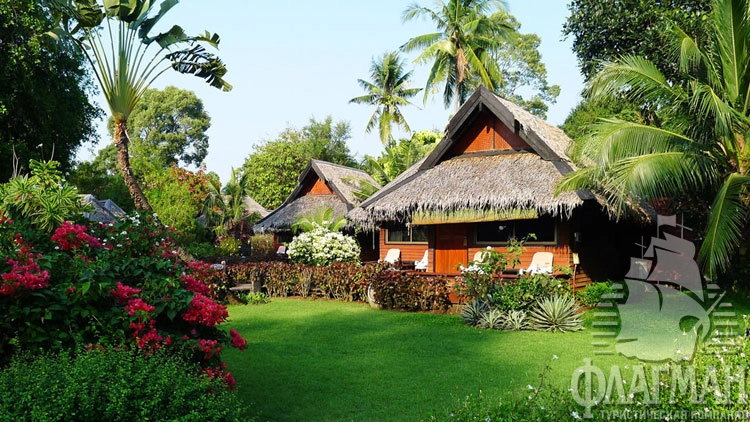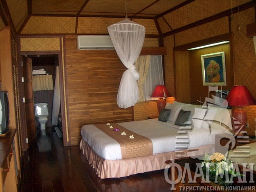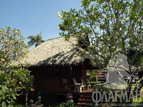 В отеле 56 коттеджей, оформленных в современном тайском стиле.