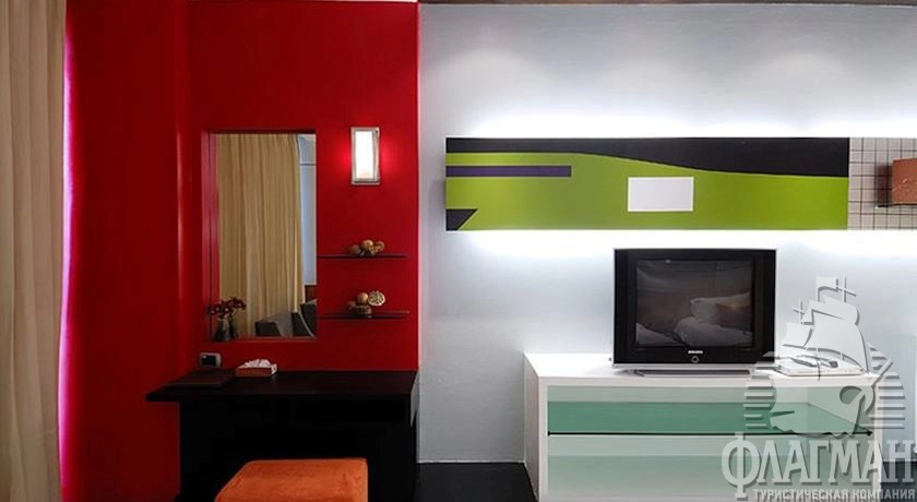 - 354 Superior Sea View (вид на море, просторные комнаты, выполнены в трех разных стилях: pop art (2–4 этажи), retro art (5–7 этажи), pure art (8–14 этажи), макс. 2+1 чел., 36 м2)