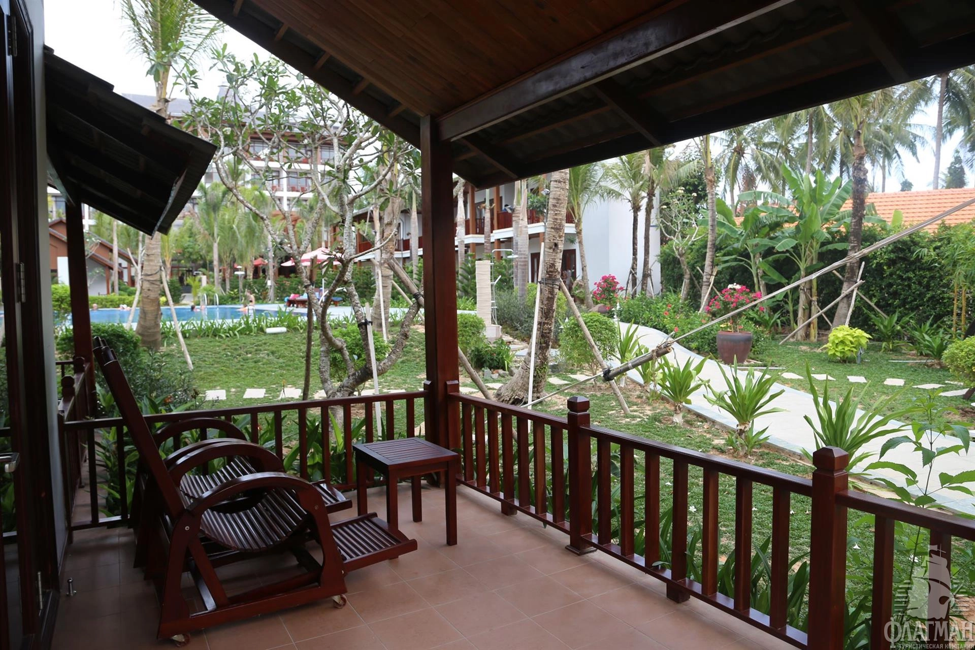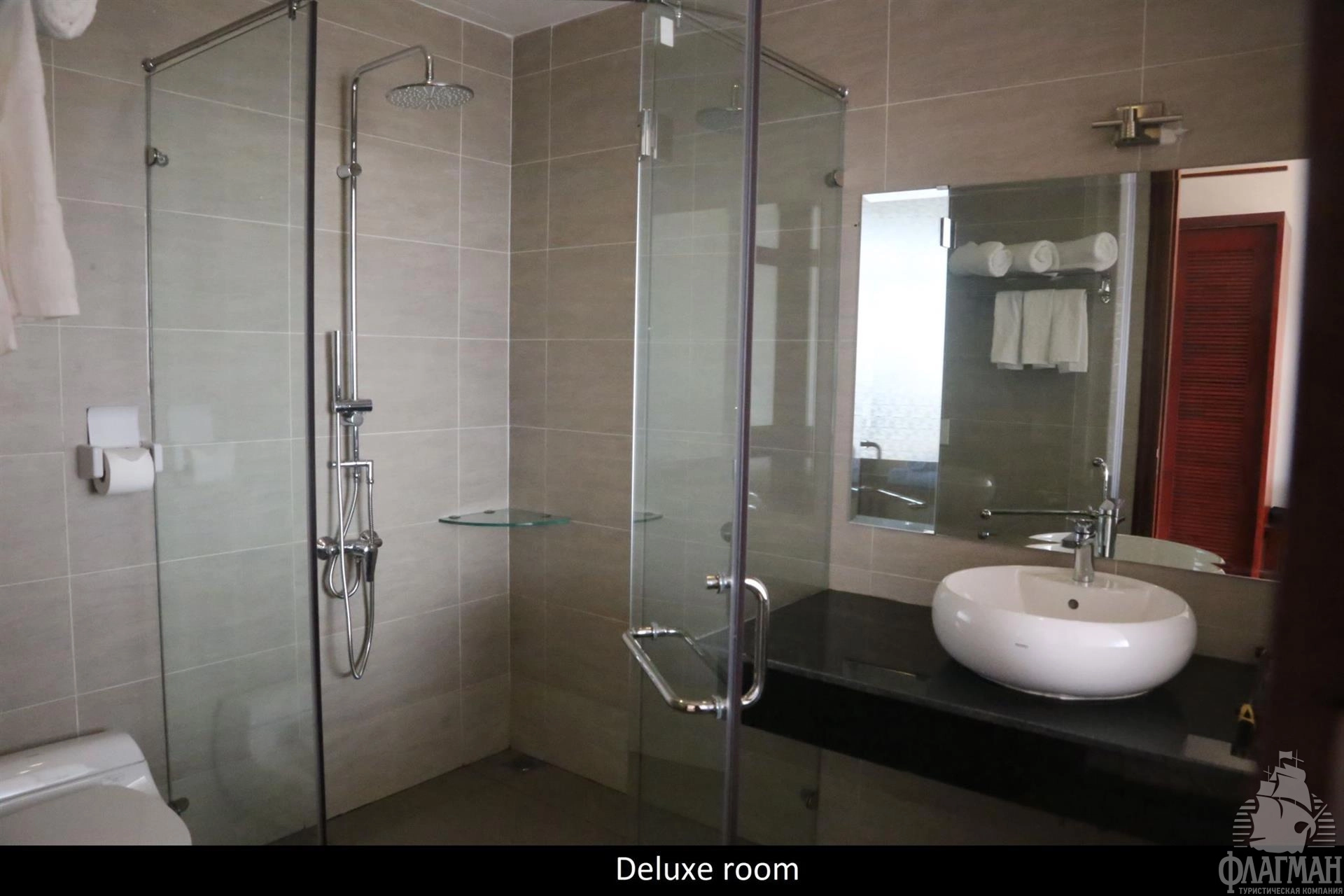 - Deluxe room with balcony (42 кв.м, макс. 2 взрослых + 2 детей/3 взрослых + ребёнок) - спальня (dbl bed 1,6x2 м), ванная комната, балкон с видом на сад