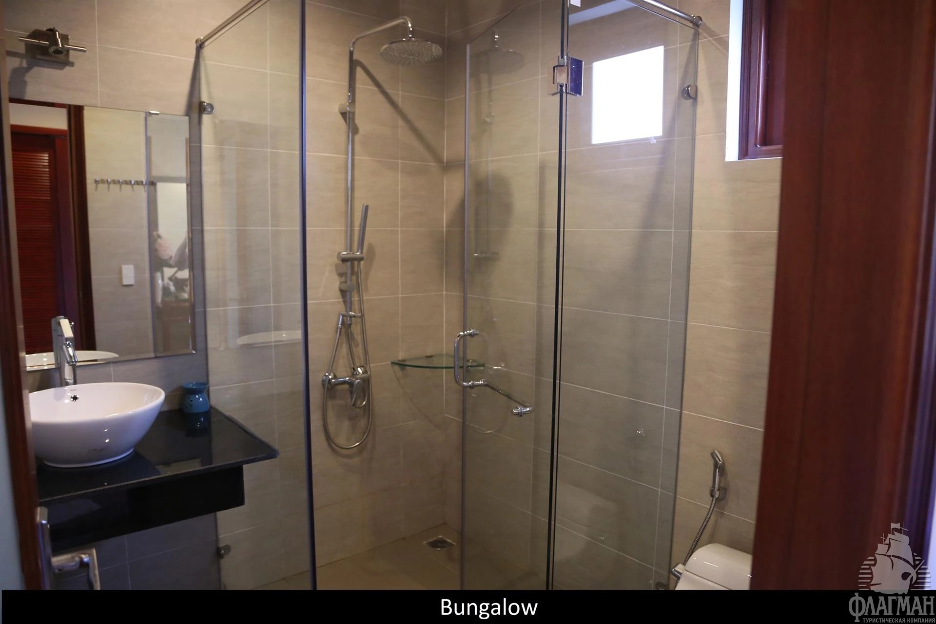 - Bungalow (45 кв.м, макс. 2 взрослых + 2 детей/3 взрослых + ребёнок) - спальня (dbl bed 1,6x2 м), ванная комната, терраса с видом на сад