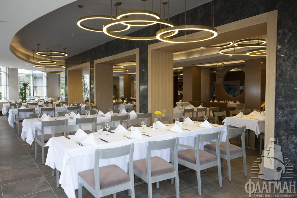 - рестораны a la carte: 4 (барбекю, рыбный – по предварительной записи, бесплатно; итальянский, суши – плата за резервацию)