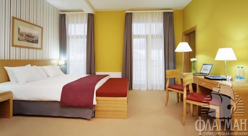 22 номера Супериор (25-30 кв.м) - одна двуспальная кровать или две полутороспальные кровати. В номере: посредством перегородки пространство комнаты разделено на две зоны — гостиную и спальную, телевизор, телефон, мини-бар, высокоскоростной доступ в интернет, бесплатный Wi-Fi, фен.