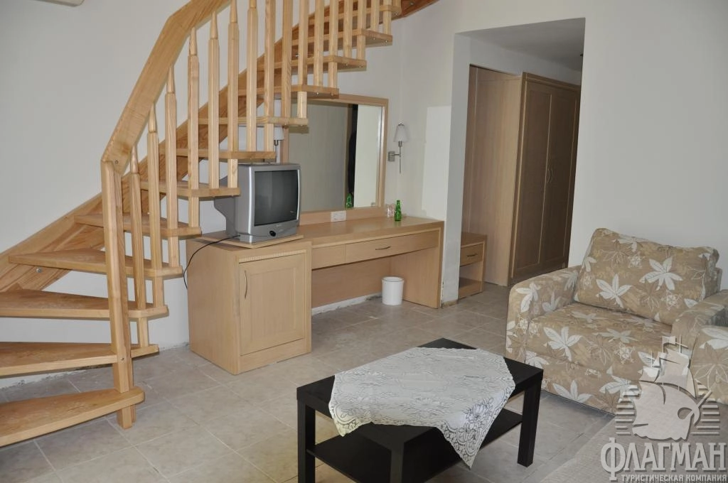 - Dublex Suite (около 45 кв.м, двухуровневые номера: на первом этаже - гостиная, на втором - спальня, не разделенные дверью; вид на горы; макс. 3 взр.+1 реб.)