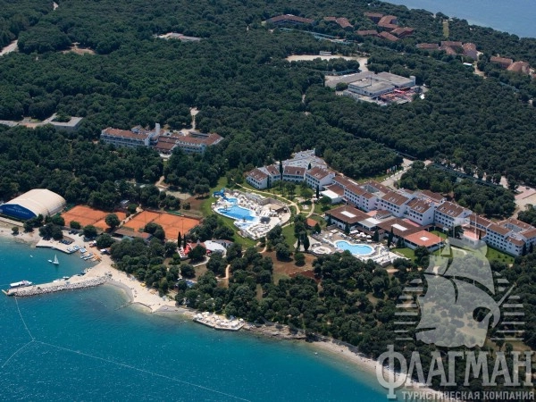 Расположен в местечке Лантерна, в живописном парке на берегу моря, в 13 км от исторического центра Пореча. Расстояние до аэропорта в г.Пула - 70 км.