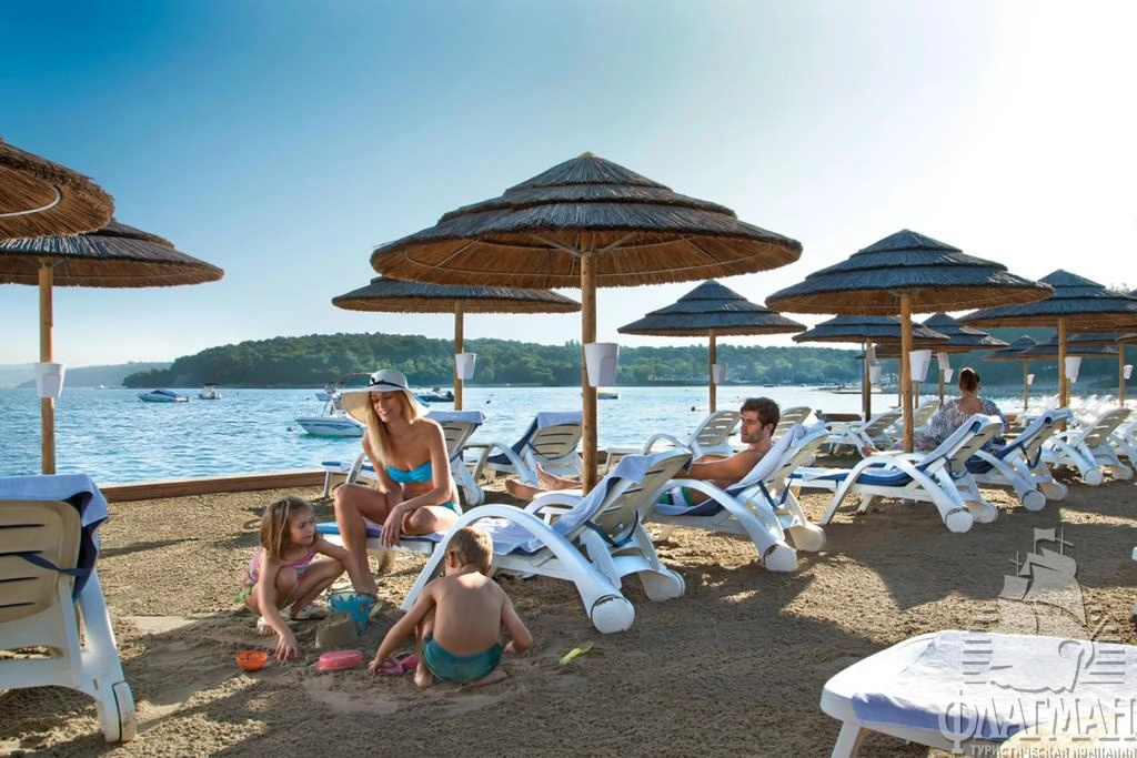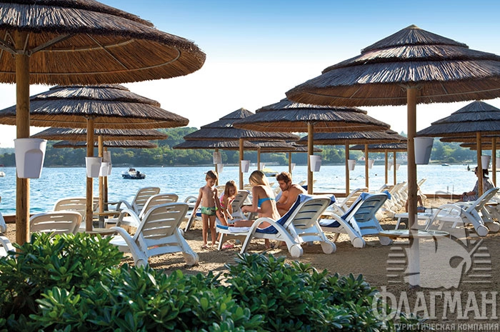 - гости вилл класса люкс Valamar Tamaris Villas получают зарезервированное для них место на пляже с шезлонгом и соломенным зонтом полностью бесплатно