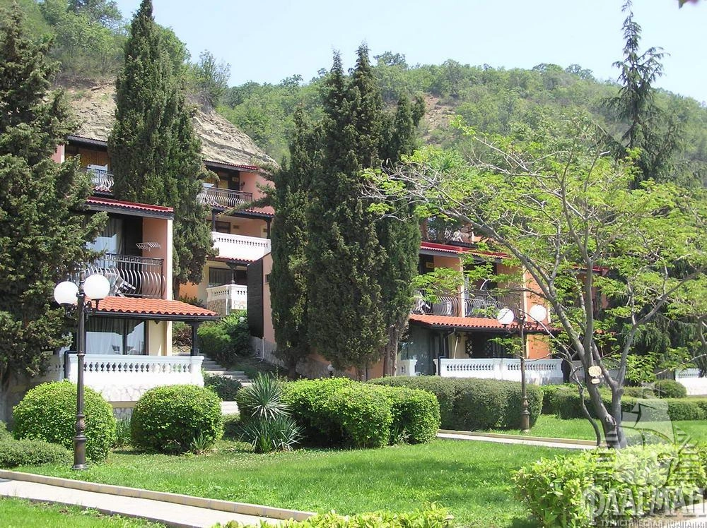 в курортном комплексе Елените, в 40 км от аэропорта города Бургас, в 12 км от курорта Солнечный Берег, на самом берегу моря.