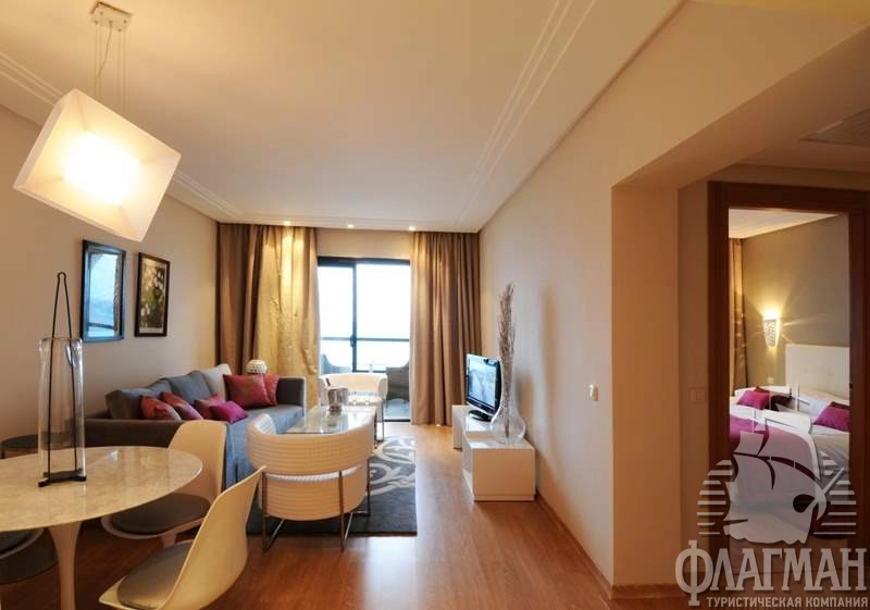 - 7 junior suites (30 м2, спальня, гостиная зона, межкомнатной двери нет, халат и тапочки, макс. 2 чел.)