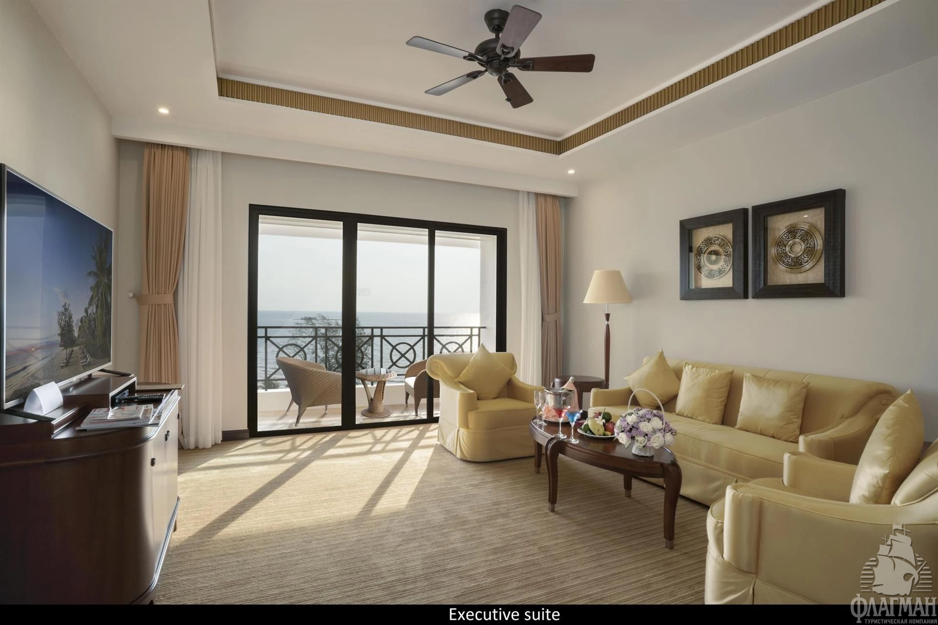 - Executive suite ocean view (96 кв.м., макс. 3 взрослых + ребёнок) - спальня (dbl bed), гостиная, межкомнатная дверь, ванная комната, балкон с видом на море