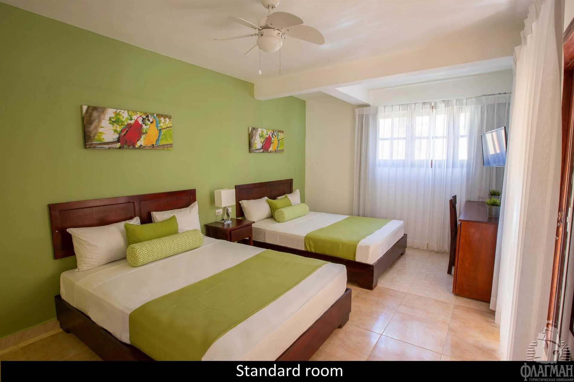 - Standard (22m2, макс. 2+2/3+1/4+0 чел.) современная и просторная комната; в номере: телефон (платно), бесплатный Wi-Fi, телевизор, балкон или терраса, кондиционер, потолочный вентилятор, сейф (платно), двуспальная кровать или 2 двуспальные кровати, ванная комната с душем и феном;