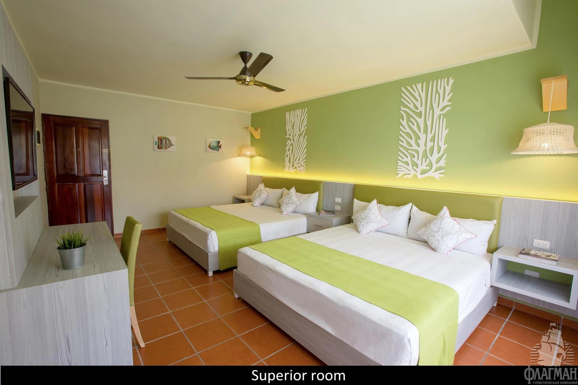 - Superior Room (30м2, макс. 2+2/3+1/4+0 чел.) номера повышенной комфортности, 2 супружеские кровати или одна большая двуспальная и одна индивидуальная, душевая кабина, вид может быть на бассейн, на улицу, на сад или частичный вид на море.