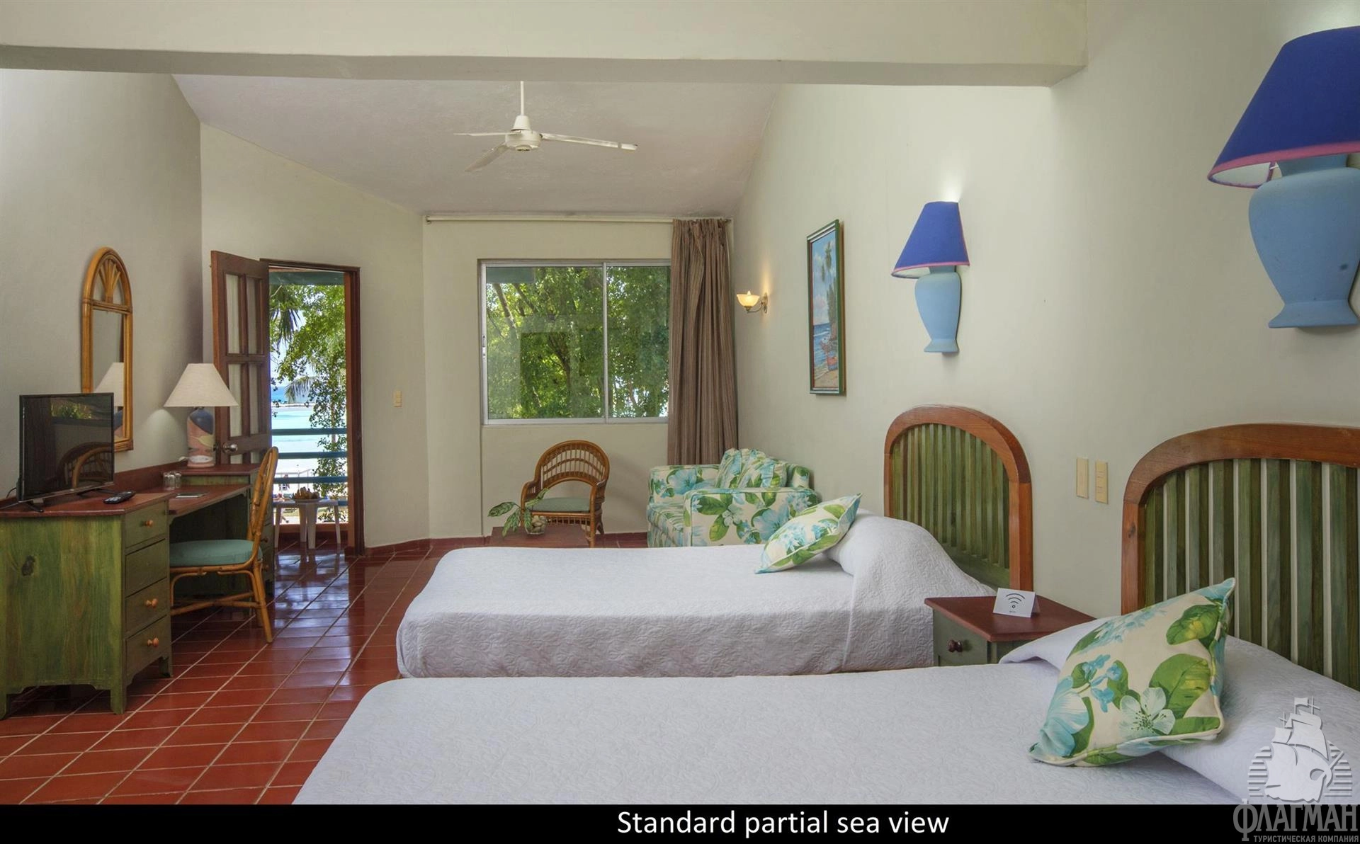 - Standard Partial Sea View (мин. 1 макс. 4 чел.) номера с 2 кроватями, ванная комната, меблированный балкон, частичный вид на море;
