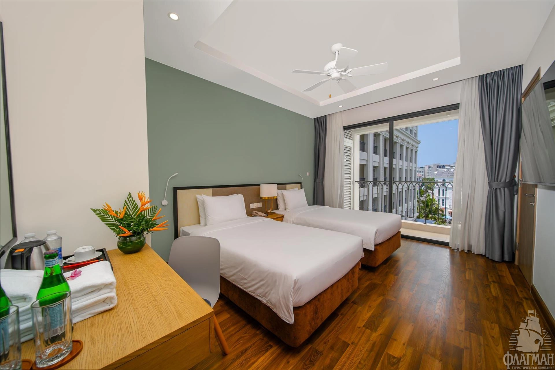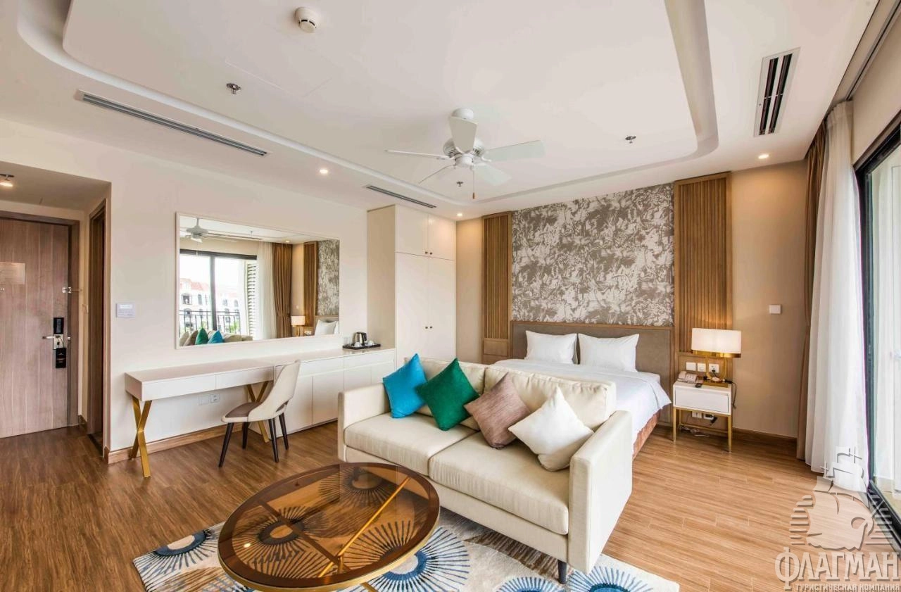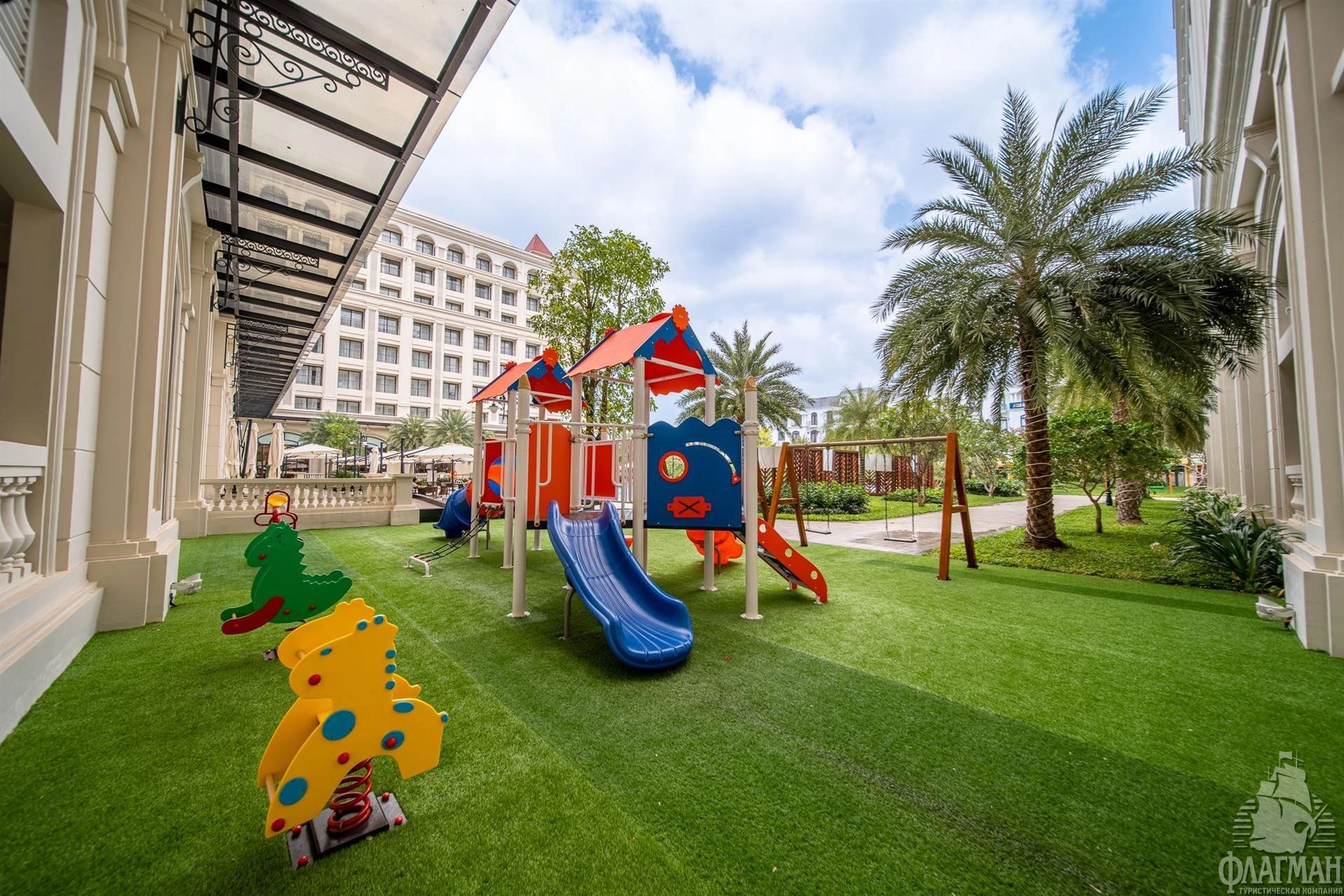 Расположен в городе Гань Зау в 25 км от международного аэропорта на территории в 36 га. Рядом находятся Grand World (Вьетнамская венеция) - 3 минуты пешком, до парка развлечений VinWonders - 5 минут на регулярно-курсирующих автобусах (бесплатно), 15 минут на автобусе до VinSafari. Частный песчаный пляж с небольшим количеством лежаков расположен в 450 м от отеля.